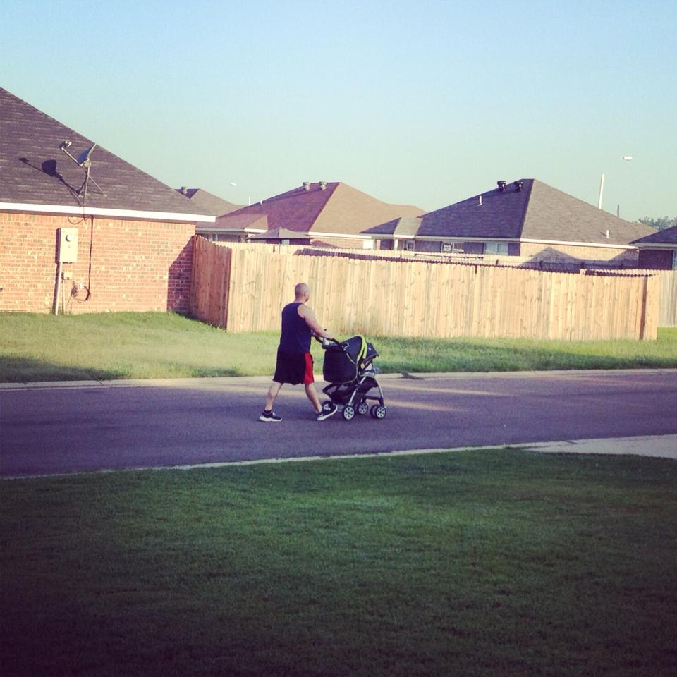 Zach dressed him one day and he just had to put on his Puma shoes. They might have been an inch too big. He wore them while we went out walking but then they had to come off.